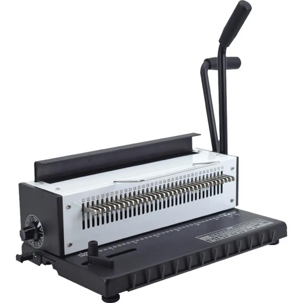The STANX Double Loop Wire Binding Machine (STTD-1231) combines durability, precision, and manual operation to create high-quality, bound documents. Ideal for offices, schools, and print shops, this binding machine ensures reliable performance and consistently neat results. The STTD-1231 is designed to handle both punching and binding with ease. With a punching capacity of 12 sheets (80gsm) at once and a binding capacity of up to 130 A4 sheets, this machine can handle a variety of document sizes and thicknesses. Its manual operation ensures that users maintain control over the binding process while delivering consistent results. Equipped with 34 punching holes and a 3:1 pitch, the machine creates perfectly aligned holes for double-loop wire binding. Its 15.9mm maximum binding ring size accommodates larger documents, making it perfect for reports, manuals, and presentations. Compact yet robust, the STANX STTD-1231 is designed for everyday use, providing an efficient and effective solution for professional document binding.