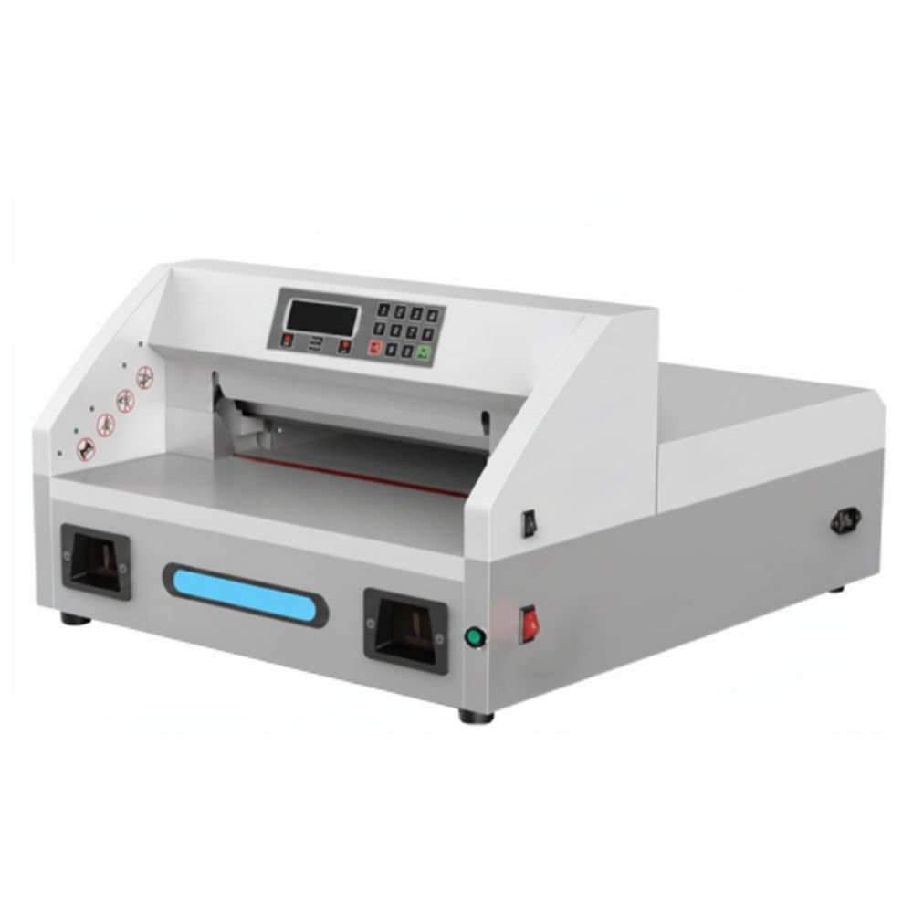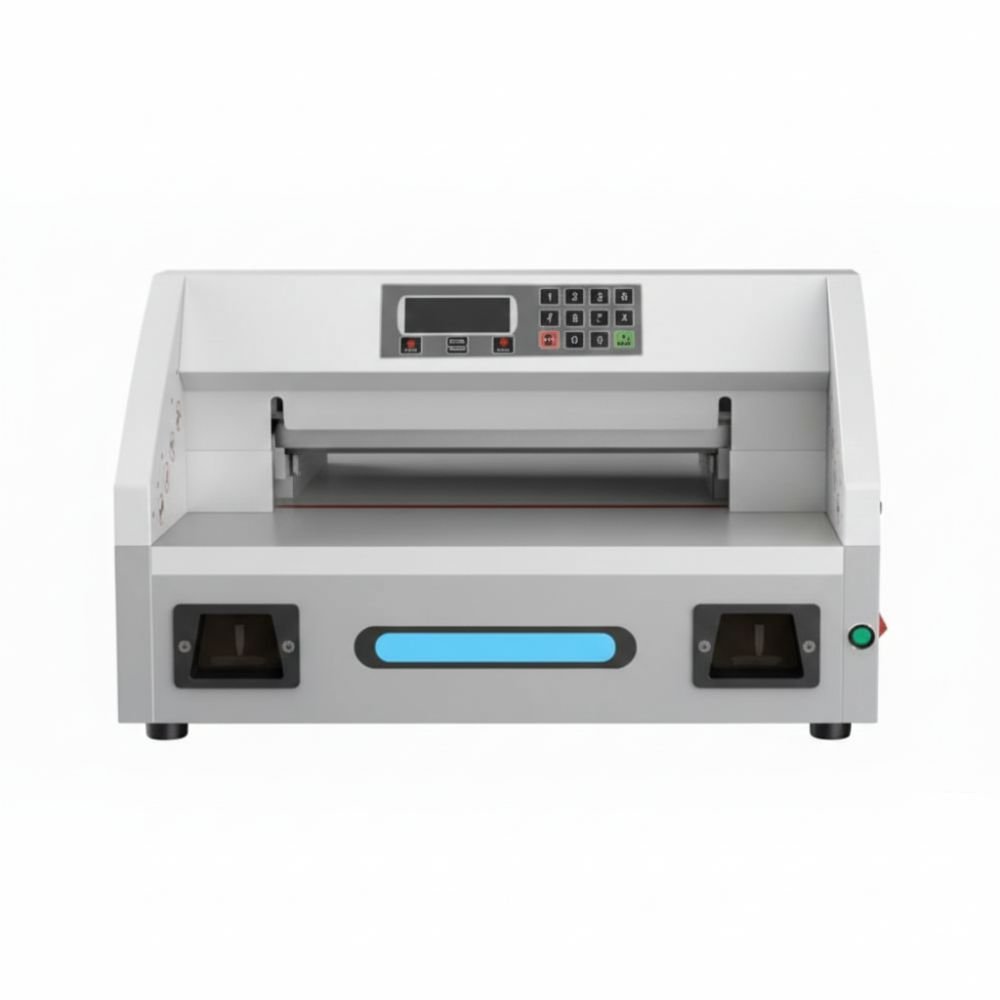 The STANX Electric Paper Guillotine Automatic – STE330S is engineered to meet the highest standards of precision, durability, and operator safety. Designed for professional print rooms, offices, educational institutions, and commercial environments, this guillotine delivers clean, accurate cuts while maintaining strict safety control. Built with a robust steel body, the STE330S is capable of handling a maximum cutting thickness of 40mm, making it suitable for heavy-duty paper stacks. Its user-friendly control panel features a dual-key operation system, ensuring controlled and intentional cutting operations. Safety is a top priority with the inclusion of infrared safety sensors and electronic knife lock safety protection, which prevent accidental blade activation and enhance operator protection during use. For precision cutting, the guillotine is equipped with a hand-cranked paper push mechanism, allowing fine micro-adjustments for accurate alignment.