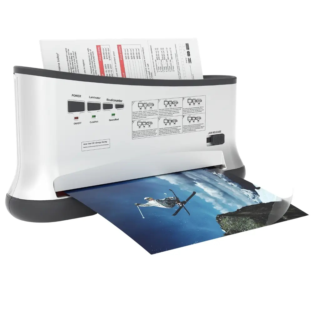 The STANX OMINI SERIES 2-in-1 A3 Laminator & A4 Thermal Binding Machine is a versatile and space-saving solution for any modern workspace. Combining two essential functions—laminating and thermal binding—into one compact unit, this machine is perfect for offices, schools, or print shops looking to streamline their document finishing processes. With a 335mm entry width, this machine can laminate documents up to A3 size with ease. It offers both hot and cold lamination options, suitable for a wide range of documents and materials. The lamination thickness can range from 75 mic to 125 mic, providing flexibility for different projects. The 3-5 minute warm-up time and 250mm/min lamination speed make it efficient for quick turnarounds, while the cooling rack ensures safe and effective cooling of laminated documents. In addition, this machine doubles as an A4 thermal binding machine, capable of binding up to 400 pages at once, making it ideal for larger projects. The auto shut-off feature adds an extra layer of safety, ensuring the machine turns off after use, saving energy and preventing overheating.